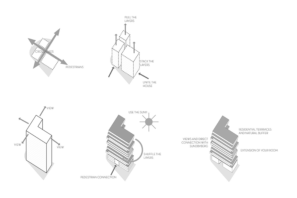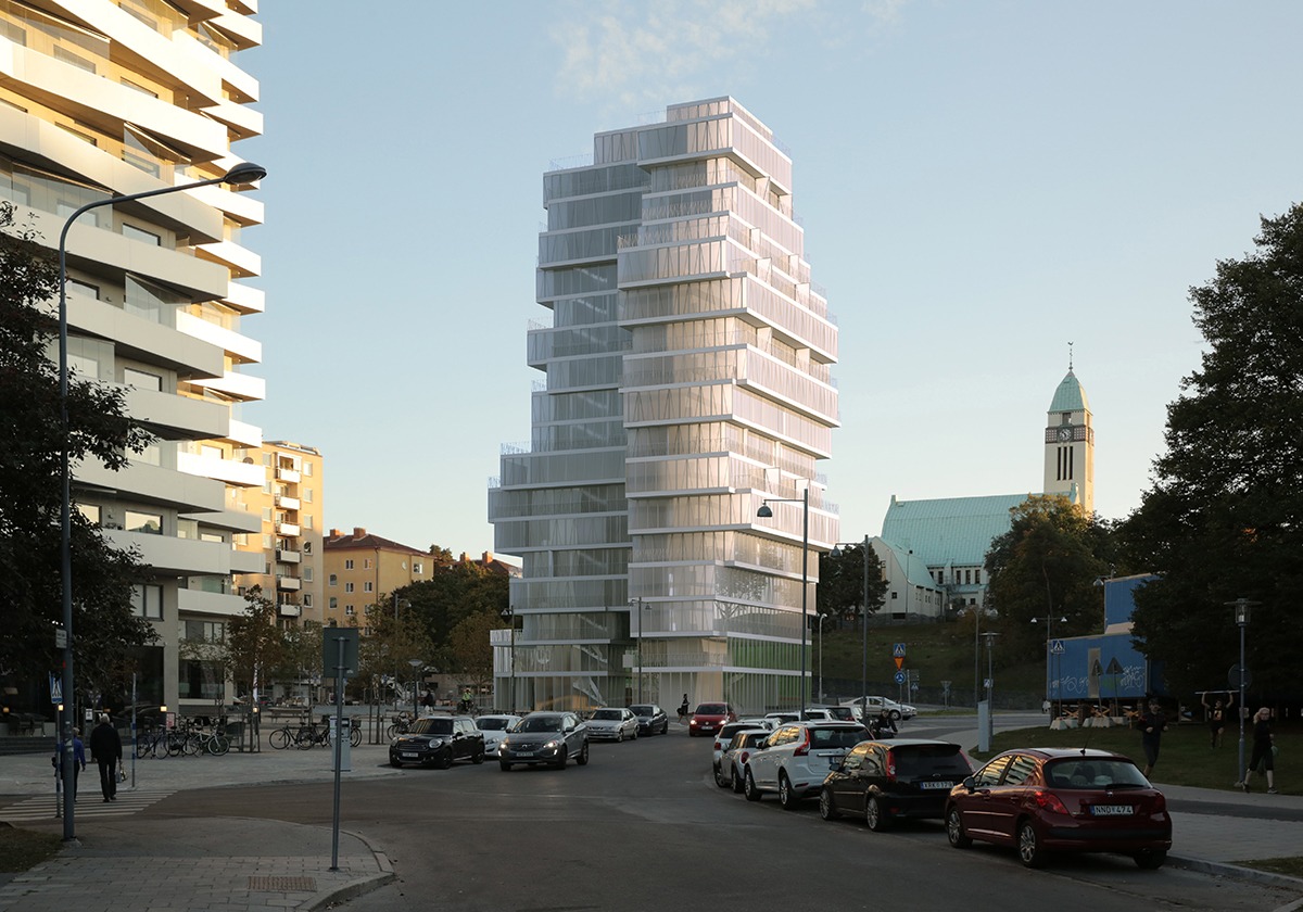 Central Sundbyberg begins where the new high-rise is going up. The goal was to create an ecological and social portal to the city of Sundbyberg. The name Sund refers to the city but it also means healthy in Swedish.