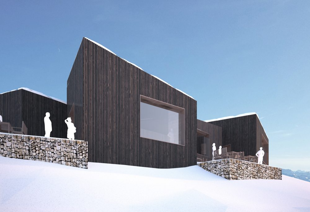 It is often windy at the top of the mountain. Breaking the structure down into smaller volumes also makes room for terraces in the sheltered spaces in between.